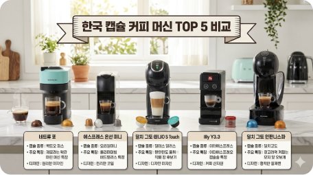 하지만 종류가 많아질수록 “과연 어떤 캡슐커피머신이 나에게 맞는가?”라는 고민도 깊어집니다. 압력이 중요한가, 캡슐 호환성이 중요한가, 아니면 캡슐 단가가 가장 중요한가? 이 글에서는 2026년 4월 기준 최신 모델과 가격 정보를 바탕으로 TOP 5 캡슐커피머신을 상세히 분석하고, 브랜드별 장단점을 날카롭게 비교합니다.